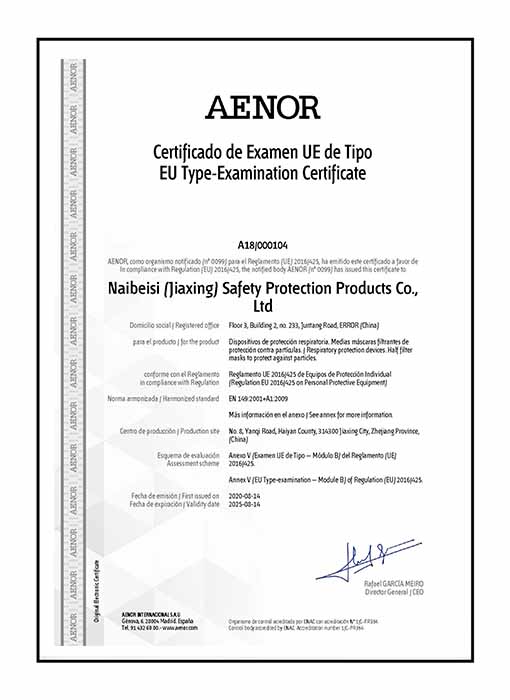 耐唄斯(嘉興)安全防護用品有限公司是上海耐唄斯供應鏈管理有限公司旗下一家集研發、生產、銷售安全防護用品于一體的專業型生產企業。工廠坐落于浙江省嘉興市海鹽縣望海街道鹽齊路8號,注冊資本500萬元。工廠占地面積4800平方米,現有員工近百人,口罩設備80多臺,日產量30萬只口罩。目前產品有折疊款、杯型款及平面款,防護等級包括:KN90、KN95、KN100、KP95、KP100、FFP2、FFP3。主營業務為:出口、內銷、代加工。